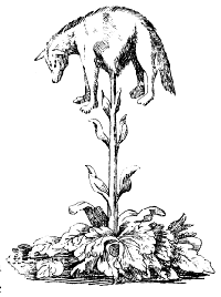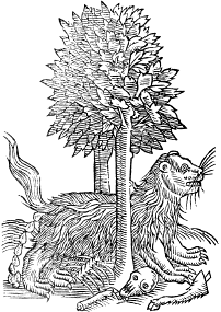 Das Gulon ist ein katzenartiges, etwa hundsgroßes Wesen mit struppigem Fell und scharfen Krallen. Besonderheit: Es überfraß sich so lange, bis es fast platzte und musste sich dann zwischen zwei Bäumen durchquetschen, damit die Nahrung besser rutschte (s. links). Diese Tiere gab es zu Odysseus Zeiten. |