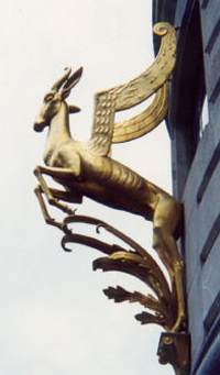 Das Periton (oder Peryton) ist ein geflügeltes Wildtier, dessen Federn dunkelgrün oder bläulich sind. Das Periton stammt aus Sparta. |
