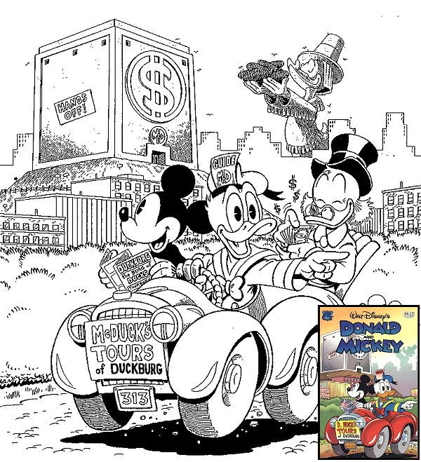 Bemerkungen | Auf dem letzlich veröffentlichten Cover wurde Dagobert entfernt und Mickys Knopfaugen in richtige verwandelt. |