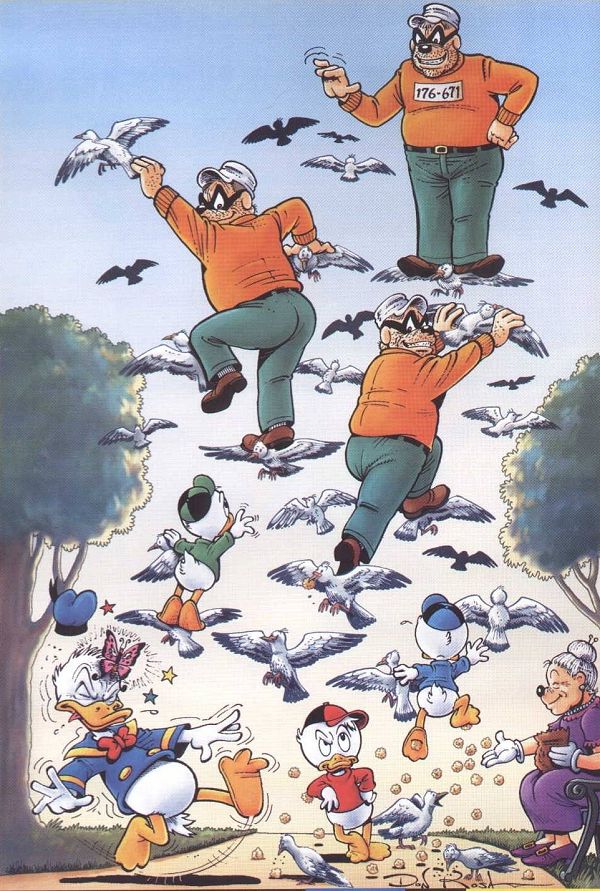 D.U.C.K.-Widmung | Auf den Flügeln der Taube links neben den Füßen des rechten Panzerknackers |