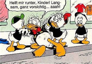 gemacht hat. Doch kaum hat sich Donald erholt, schon schreit er über
