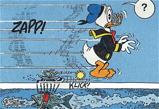 ungehört. Auch Donald Duck, argwöhnisch von seinen Neffen beäugt, reckt
