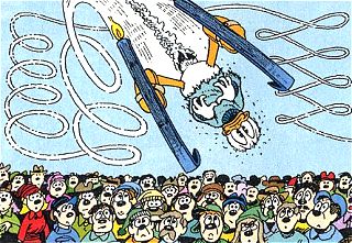 Nun kommt die letzte Chance für Donald: der Skisprung. Er entscheidet