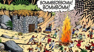 KommentarEine klassische Schatzsuche à la Rosa. Allerdings wurde hier eine sehr ausgewogene Mischung aus Humor, historischem Background, Action und Lokalkolorit gefunden, die der Geschichte eine Frische und Leichtigkeit verleiht, wie ich sie vor allem beim späteren Rosa vermisse. Während Rosa ansonsten oft dazu neigt, die Geschichten durch geballte historische oder wissenschaftliche Zusammenhänge zu überfrachten oder dem mit übertriebener, hektisch anmutender Action entgegensetzt, wurde hier ein gutes Mittelmaß gefunden und geschickt beide Aspekte (vor allem auf den letzten fünf Seiten) miteinander verbunden. Dadurch sowie durch eine klare Struktur erreicht Rosa eine harmonische Geschichte. Für eine Schatzsuche erstaunlich lustig, diesmal zum Glück nicht überlastet mit Hanswursthumor zweiter Klasse. Der Witz transportiert die Handlung und vermittelt nach altem barkschen Vorbild Lokalkolorit. Die Geschichte ist wie geschaffen für Rosa, damals absolut auf seiner Höhe, dessen Spezialgebiet wohl immer die Schatzsuche bleiben wird. Selbst das offene Ende tut der Geschichte nichts ab. Ein kleines Meisterwerk im Schatten seiner Fortsetzung: 1 |