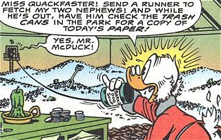 Hidden Mickeys | Gustav liest in Panel 1 auf Seite 2 ein MM-Heft, außerdem benutzt Dagobert in Panel 5 auf Seite 2 eine Dose »Barks Dog Soup« als Haustelefon. |