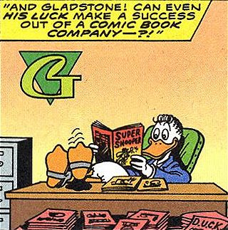 ![]() ![]() | HintergrundinfosAllgemeinesUrsprüngliche Übersetzung von Michael Czernich Dons KommentareAus Dons Anmerkungen in derHall of Fame 1: Es handelt sich um einen wunderbar geradlinigen, kleinen, witzigen Comic. Die Pointe bleibt nicht-amerikanischen Lesern leider verschlossen, da die Geschichte eigentlich nur für den Gladstone-Verlag, unseren amerikanischen Disney-Lizenznehmer, gedacht war und am Ende der Geschichte Gustav Gans [im Original Gladstone Gander] den Gladstone-Verlag übernimmt. Barks-Bezüge (und andere)Im vierten Panel von Seite 7 laufen Berengar