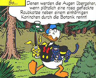 ![]() ![]() ![]() | HintergrundinfosAllgemeinesObwohl es sich bei den von Donald verzierten und von den Kindern identifizierten Tieren allesamt um Fabelwesen handelt, sind die Tiere nicht einfach Rosas Fantasie entsprungen. Sie beruhen tatsächlich alle auf alten Legenden. Dazu gibt es einen ausführlichen Eintrag im Schlauen Buch. Hier sieht man übrigens das erste Mal in einem Rosa-Comic Dorette Duck und Franz Gans. Ursprünglicher deutscher Titel: Dons Kommentare