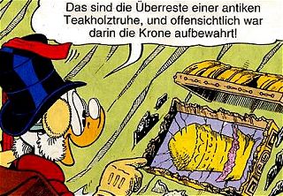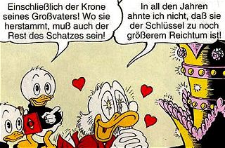 Verlust seiner Krone. Was Dagobert nicht weiß: Er hat die Krone nicht erst im Fluss, sondern