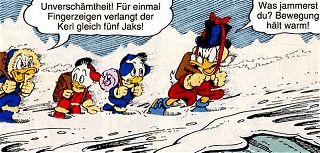 fortsetzen. Durch Schnee und Sturm gehen die Entenhausener bis zu