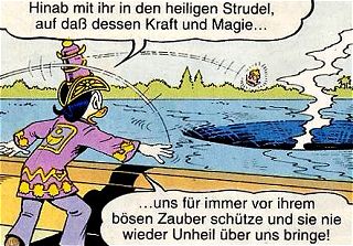 denn ihr Boot wird vom Strudel angezogen. Donald indessen bemerkt, dass der